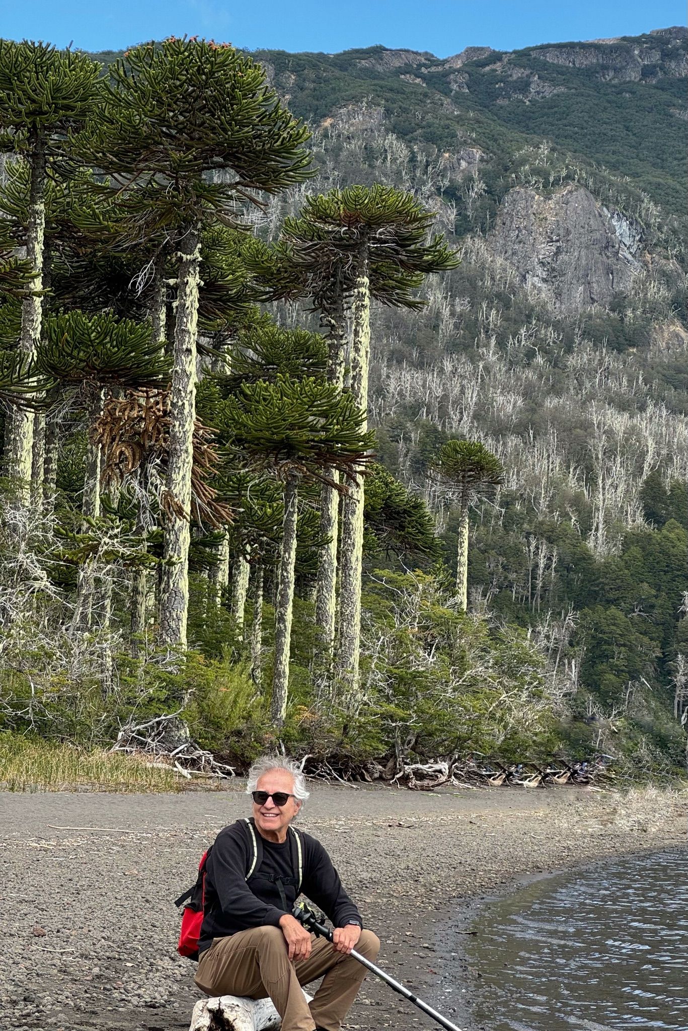 The trees are in the border of Lagoon Huinfuica, in the easy trekking called Lagunas Andinas. During the 5 km trail grow hundred of old and young Araucaria araucana. For centuries the Pehuenche people collect their seeds “piñones”, which is part of their basic food See more in https://vimeo.com/685046846