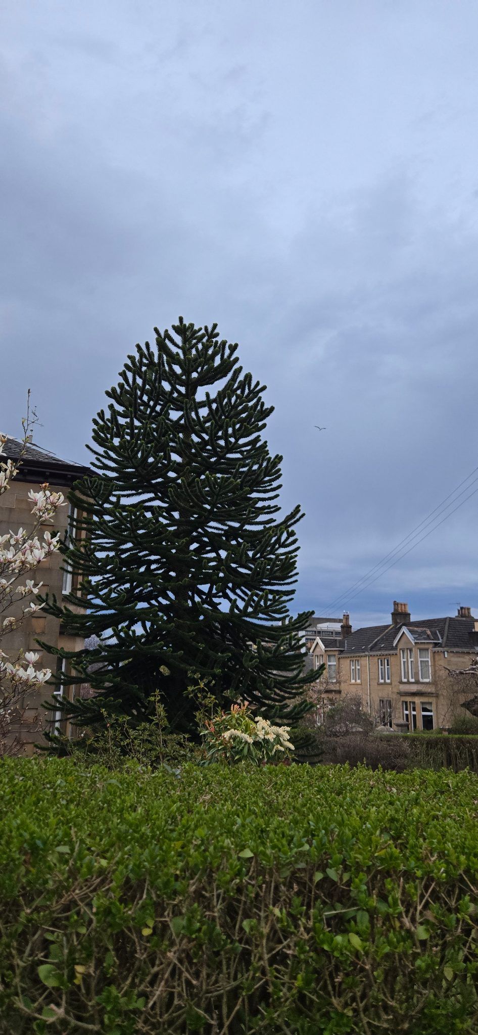 Spotted this on way to pals house. Apparently the sorry is that when the owners kids were wee he asked them what kind of tree they would like they chose monkey puzzle and now years later they have grown up and so had the tree